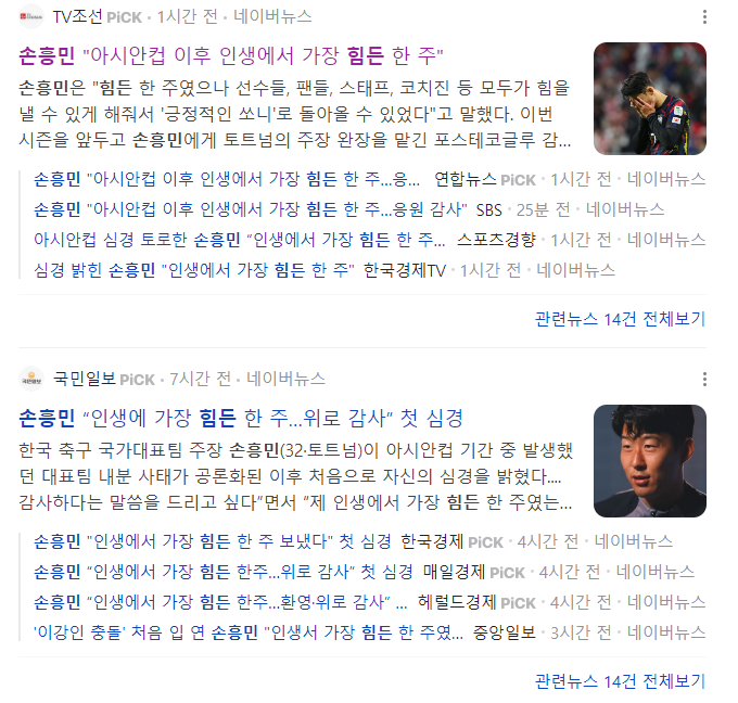 손흥민의 힘든 한 주, 팬들과 동료의 지지로 극복